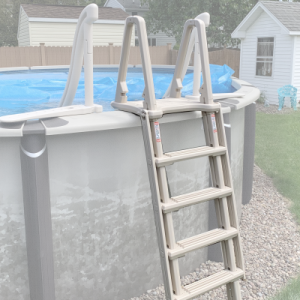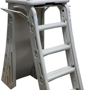 Confer Plastics 7200 Roll Guard 48″ to 56″ Adjustable A Frame Safety Ladder for Above Ground Outdoor Patio Swimming Pool Platform Ladder with Step Barrier, Warm Grey…