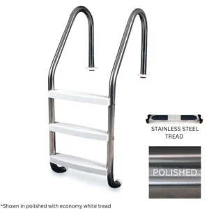 Global Pool Products GPPLDE493STSSEW 0.049 in. Economy 3 Step Ladder with White Height – Stainless Steel