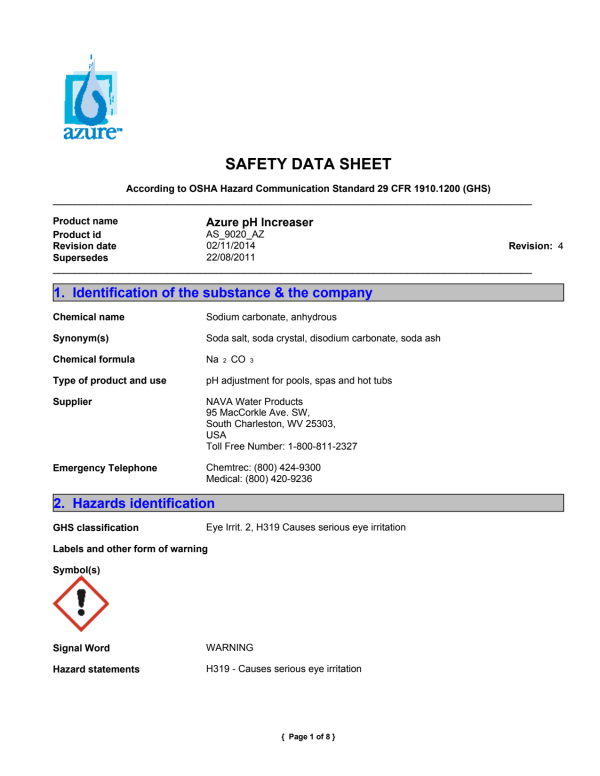 Azure pH Increaser Balancer, 25 lb | 12000728. This product offers a range of features such as Effective water balance control, Raises pH in swimming pools. Technical specifications and specific features include: Weight: 29.35 kg.