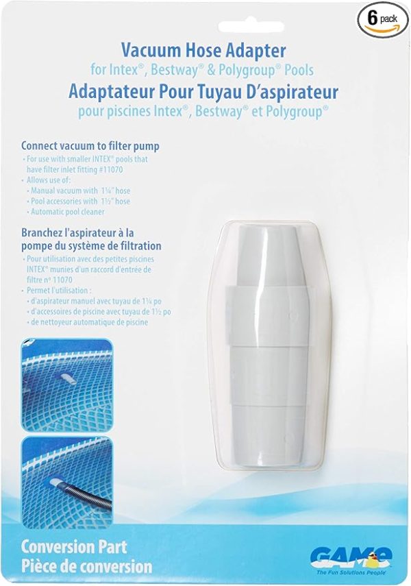 The Vacuum Hose Adaptor allows an automatic pool cleaner with standard 1 1/4 inch or 1 1/2 inch hose to be connected to an Intex pool.