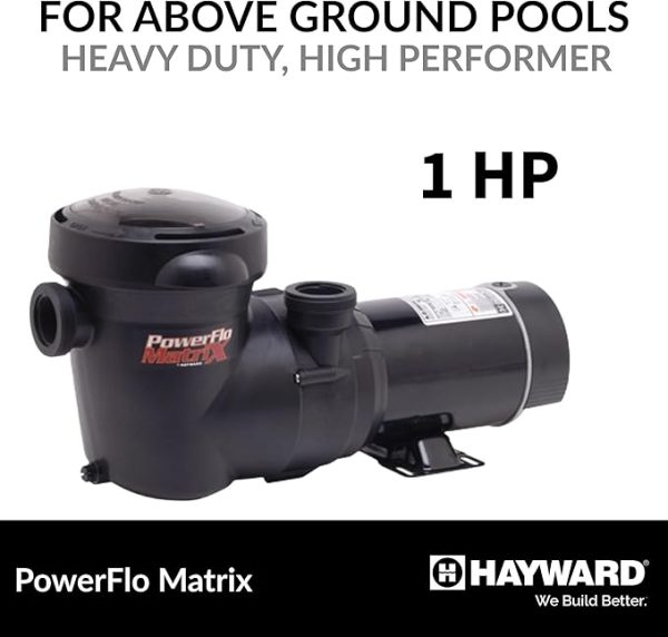 - The Hayward PowerFlo Matrix Above-Ground Single-Speed 1 HP Pool Pump features an industrial-size strainer basket for large debris collection and minimal maintenance