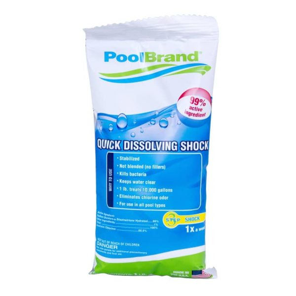 Pool Brand Quick Dissolving Shock provides a powerful and efficient solution for maintaining pristine pool water. This stabilized, quick-dissolving shock is designed for use in all pool types, effectively killing bacteria and keeping water crystal clear. Its pure, unblended formula ensures no fillers dilute its potency, while it also eliminates unpleasant chlorine odors. With one bag treating up to 10,000 gallons, this shock treatment offers reliable and rapid sanitation for your pool.
