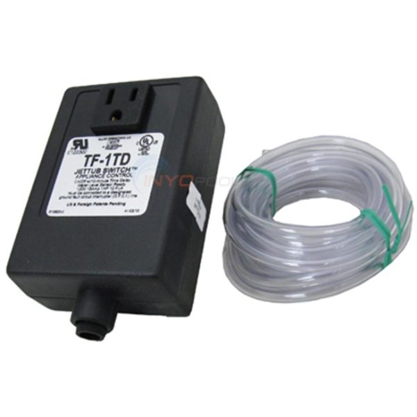 The Allied innovations TF-1TD is a solid state on /off air switch with a built in 10-minute time delay feature. The unit plugs into any standard household wall receptacle. Any 120v, 1 hp pump can be plugged directly into the TF-1TD. Pressing; the air button initiates a 10-minute time delay, after which the control automatically turns off. The air button can override the time delay and shut the motor off prematurely.